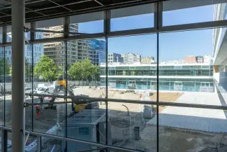 Au cœur du centre, la bibliothèque Hélène Ahrweiler et les espaces de vie étudiante, côtoient des infrastructures modernes : les amphithéâtres, des salles de travaux dirigés et des laboratoires spécialisés qui offriront une expérience pédagogique riche et variée. Le campus disposera de quatre amphithéâtres d’une capacité allant de 200 à 500 places et de 45 salles de travaux dirigés (TD) adaptées à différents formats de cours. Conçu pour être accessible depuis le parvis, l’amphi 300 pourra accueillir, en dehors des heures de cours, des événements culturels ou de médiation scientifique, favorisant la mixité des publics.