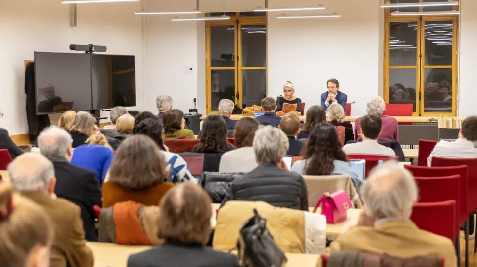 Après les discours introductifs de François Nawrocki, directeur du service commun de la documentation (SCD), et de Pierre Malié, responsable de la bibliothèque Jean-Claude-Colliard, Sylvie Colliard a pris la parole pour retracer avec émotion la carrière de son époux, mettant en lumière ses engagements académiques et institutionnels. Jean-Philippe Derosier, professeur de droit public, membre de l'Institut universitaire de France et directeur de l'ouvrage Jean-Claude Colliard, précurseur de la science constitutionnelle, a ensuite pris la parole et tracé le portrait intellectuel de ce dernier. À l’occasion de cette soirée de conférence, Sylvie Colliard a fait don d’une partie de la bibliothèque de son époux. Ces ouvrages font désormais partie des collections de l’université Paris 1 Panthéon-Sorbonne.